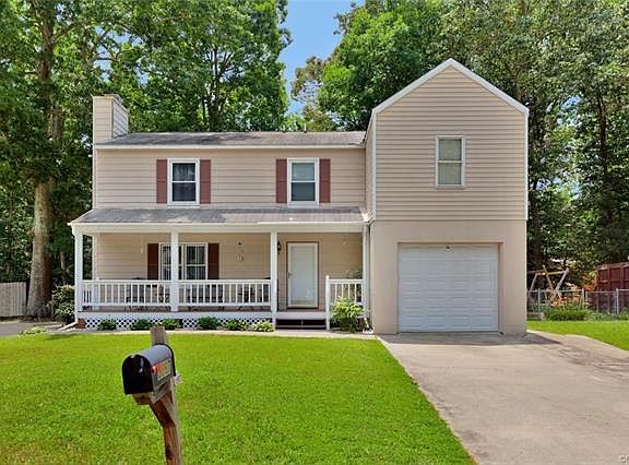 QUIET NEIGHBORHOOD with CONVENIENCE! This sweet home is tucked away in the established neighborhood of Afton, conveniently located minutes from Rte 10/Iron Bridge Rd, LC Bird High School, Chesterfield Courthouse, 288, Ironbridge Park, and so much more! Find lots of potential as you pull into one of two paved driveways and walk up the sidewalk to a full front porch. The living room is large and comfortable with a gas fireplace and lots of light. Around the corner find the dining room and kitchen before taking a look outside through the back door. The huge patio and fenced-in back yard are ready for fun cookouts and summer entertaining. This lot backs up to trees, making it very private and partially shaded. Upstairs, find a spacious master bedroom and two additional bedrooms down the hall. This house has so much storage, plus capacity for more finished square footage! The second floor has a surprise bonus of unfinished space spanning 13âEUR(tm)x 33âEUR(tm) with windows and flooring, along with a walk-up attic accessed through bedroom 2. Enjoy the NEW carpet, NEW paint and NEW countertops. This darling of a home holds so many possibilities, come see it today!