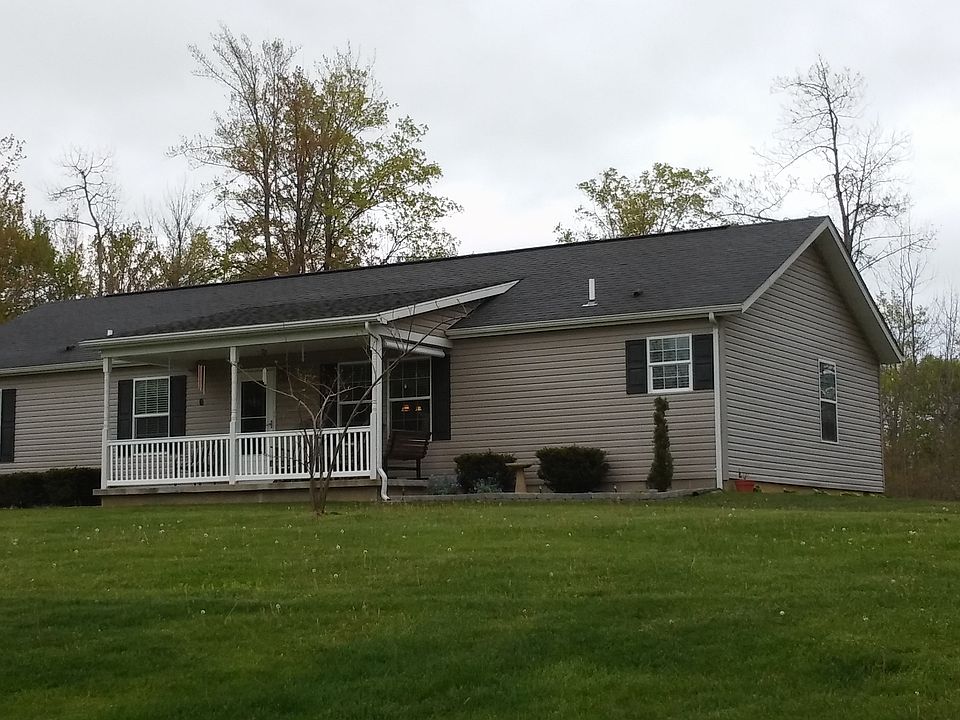 Where to start with this BEAUTIFUL home! Three bedroom two full bath sitting on 5+ Acres. This Paradise is located at the highest point in Perry Township! The view from this home is one that you MUST see. Interior of this home is in almost perfect condition, but MOVE IN READY! Currently no garage but deck is movable to allow you to build the garage of your dreams. Two out buildings are located at the property that can be used for storage. Come out and witness the wildlife where this home is located. Turkey, Deer, Rabbits, and a wide variety of Birds. Taxes are homested