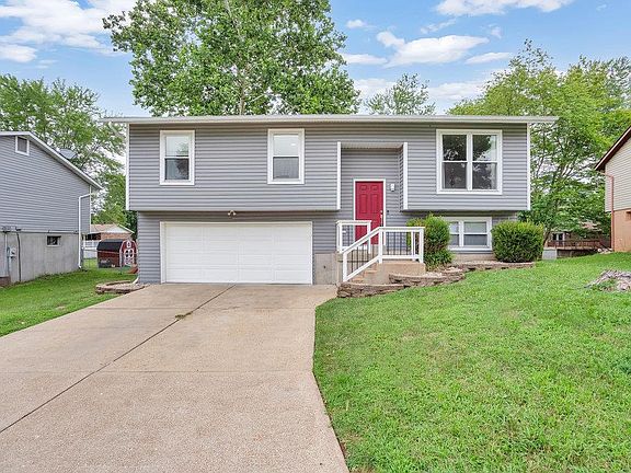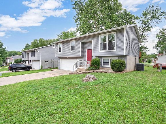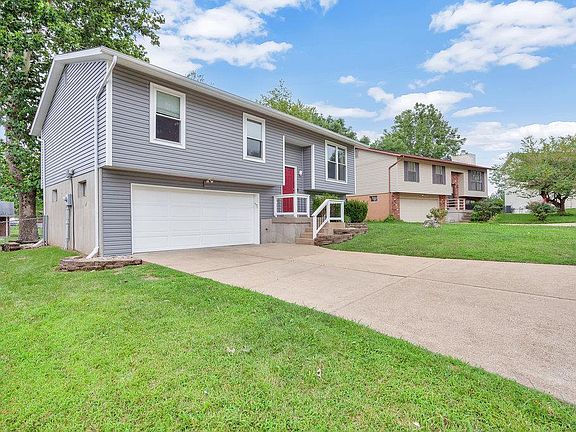 Showing start at 9:00 AM Sunday 8/7/22!! Super great starter home conveniently located near shopping and Highways with numerous upgrade such as, In 2017:Newer vinyl siding and enclosed soffits, Newer windows, nerwer roof! An Ameren Missouri Heat Pump Program installed HVAC system was installed in 2021. Other fine features include: wood flooring through out the main level, recessed lighting, All 3 full bathrooms have been recently updated. The huge master bedroom can easliy be furnished with a king size bed with end tables and can still comfortbly fit a large dresser. The massive rec room is designed with its own full bathroom and can easliy be used as a bedroom fouth bedroom. The large deck can be opened up so that you can at the sky from the hot tub below(which is included in the sale. The large level yard is fully fenced and ideal for the family dog. All this plus the washer and dryer are included in the sale. The 2 car garage is extra deep, to allow for more storage.