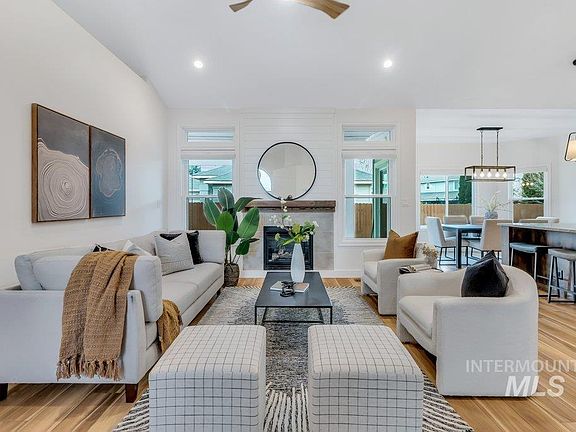 Modern elegance blends seamlessly with farmhouse chic accents in this single-level stunner boasting pride of ownership both inside and out. Fresh, neutral tones and new hardwood flooring draw you into a bright and airy great room complemented by a warm, gas fireplace set against a shiplap backdrop. Flowing open-concept design leads into an entertainer's kitchen featuring sparkling granite counters, contrasting cabinetry and stylish tile backsplash. Pamper yourself in the luxurious owner's retreat with direct access to a private patio and ensuite complete with a soaker tub, heated floors and walk-in closet. Flexible layout offers a 4th bedroom that would make an ideal home office. Generous upstairs bonus room with convenient kitchenette is the perfect rec room, home gym or private guest suite. Relax and entertain year-round beneath a spacious patio surrounded by low-maintenance turf, attached shed for extra storage, and RV parking. New HVAC (21), Dabella windows, and air cleaner are just a few recent upgrades!
