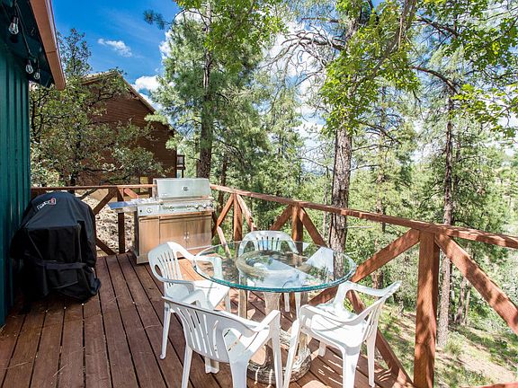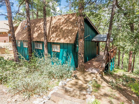 This Mountain get away is nestled in the tall pines of Prescott. Great open living space with a loft and two bedrooms. The great room has a wood stove, new kitchen and appliances. The home has recent updates on plumbing, roof, new paint inside and out. The new deck provides an amazing outdoor living space to enjoy the outdoors and wildlife. Perfect mountain retreat! Turn key and fully furnished. Come see today!