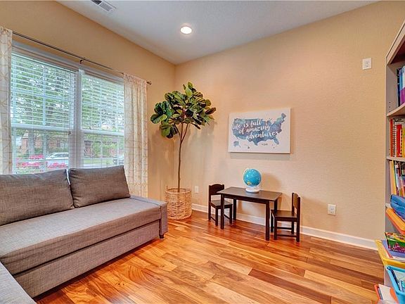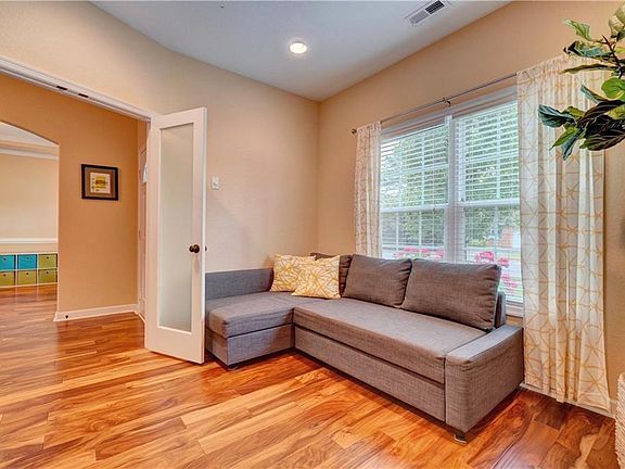 Wonderful well loved & cared for home! From the moment you walk in you will notice the gleaming wood floors throughout. To the left of the entry is a great flex room w/ doors for a private office, work-out room or homeschool area.The dining room is currently used as a playroom, but they still have the original chandelier! The open family room includes lots of windows for natural light & a gas fireplace. Open to the family room is the kitchen w/ stainless appliances, granite & a large eat-in area. Four bedrooms upstairs includes a huge room over the garage wired for surround sound & has extra storage space.The large primary suite has a beautiful tray ceiling, large walk-in closet & a bath w/ soaking tub & double sinks w/granite. A beautiful backyd includes a great deck for entertaining, privacy fence & a shed for more storage. Keep your large yard beautiful w/ a front & back irrigation system.Situated on a quiet street & close to the neighborhood park, come make this home your own!