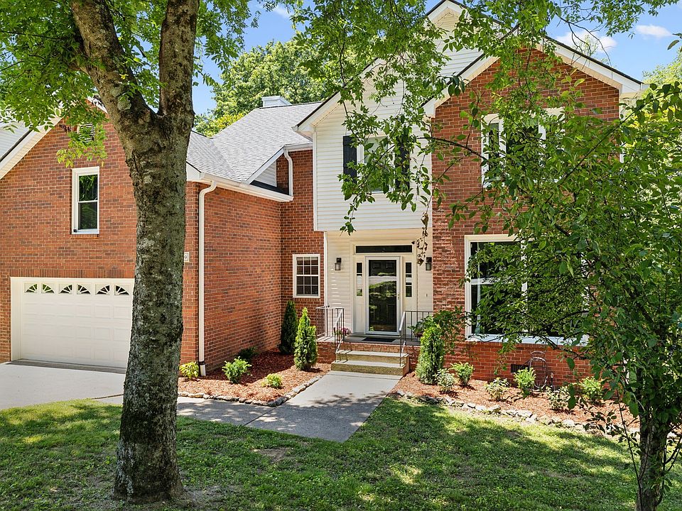 If you are looking for a house that backs up to a green space this house is for you! The formal living and dining room boast floor to ceiling windows. The kitchen has stainless steel appliances, ample counter space and the sink below the window overlooking the lush green trees in the backyard. The eat in breakfast area leads you into the great room with a gas fireplace. Dual staircases take you upstairs to the 3 bedrooms, 2 bathrooms and a large bonus room. The bonus room is set up as a music room with custom acoustical sound dampening that can remain, which makes this the perfect space for the musician. Hardwood floors, freshly painted interior, custom shades, black wrought iron and crystal lighting throughout first floor. Plenty of storage. A backyard oasis, close to I65 & I24 and shopping. This one is a must see!