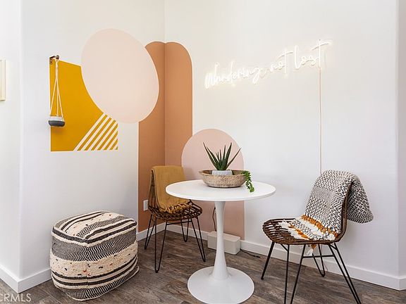 Turn-Key and Fully Furnished Gorgeous Desert Getaway With A Private Resort Vibe! It’s not often you find a property that can be utilized in this many ways, but now one of the most gorgeous and unique properties is now available! Pulling up to this 1,641 square foot 4 bedroom 2 bathroom home you’ll immediately notice the oversized driveway, 3-car garage converted movie and game room, and upgraded tile roof! Stepping through the front door and into the living area you find a hip and stylish haven filled with custom décor/furnishings, vaulted ceilings, modern lighting, stunning murals, and tasteful wood tile flooring that sweeps through the floor plan. Full of natural light flowing in from the dual pane windows create an open and airy feeling that expands on the large design. In the large modern kitchen, you are greeted by an entertainers delight! Featuring plenty of cabinets, stainless-steel appliances, and quartz counter tops! Opening up to the large dining area, this is the perfect spot for hosting dinner parties! Each guest bedroom is spacious and hosts their own custom décor, furniture, and accents that truly increase the homes charm! The Primary bedroom suite resembles that of a luxury hotel with a handmade canopy bed, ensuite bathroom with dual vanity, beautiful tiled shower, and large walk-in closet with built in shelving! Just when you think it can’t get any better, it does! How about your own private movie theatre with luxury seating/popcorn maker, built in bar, game room including ping pong, foosball, shuffleboard, custom handmade bar and more?!? Now in the backyard you’ll be amazed by all of the outdoor activities! A custom-built saloon takes you back in time and is the perfect spot to host a card game or a photoshoot! Need to relax? Take a dip in the oversized spa jacuzzi with custom built decking and privacy fence! The detached yoga platform has enough space for a group session or maybe a good spot to book a live performance! Take advantage of the oversized covered patio and plan an outdoor dining experience or relax in one of the many exterior seating areas! There is literally too much to list with this one and you’ll have to see it twice to take it all in! Additional features tankless hot water heater, HVAC for heating and cooling, mini split in the movie and game room, indoor laundry room with large washer/dryer, and more! Surely an upgraded desert experience and property like no other! Don’t miss out and call for your private showing today!