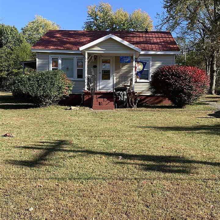 2 Bed 1 Bath home with new carpet and vinyl flooring in 2018. Full size attic with pull down stairs. Metal roof, small utility shed outside and front and back porch. Perfect starter home or investment home.