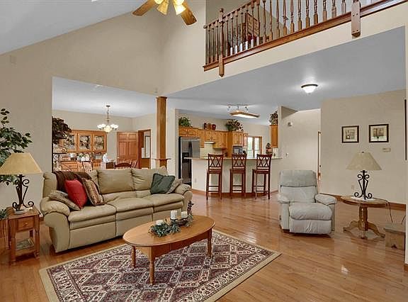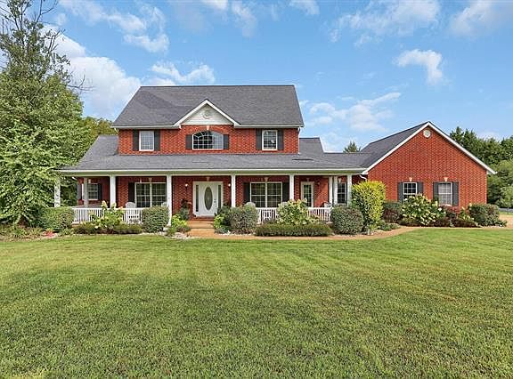 This Stunning 1.5 Story brick home is just outside of town. It's custom built with 4 bedroom 5 bath. It's just minutes away from shopping, schools, restaurants and more! Beautiful landscaping surrounds this home w/ a aggregate walkway, a wrap around covered porch, 20x20 screened in porch, w/ more decks & a patio out back. Sits on 3.95 acres. Has 9' ceilings. 10x22 laundry rm. It has a gorgeous open staircase w/ a loft that over looks the living area & large foyer. The main floor has beautiful hardwood floors, vaulted ceiling in the great rm w/ a gas FP, built-in cabinets, & a bedrm/office & bath. Also on the main level is the kitchen that has lots of cabinets & counter space, built-in microwave & oven, a gas cook top, desk space, a breakfast area & a spacious master suite/double sinks, sep tub&shower, large w/in closet. 2 beds upstairs w/ their own bath & built-ins closets. The LL is a great place to entertain with a kitchen, bath, large entertaining area, and a shop/storage area.