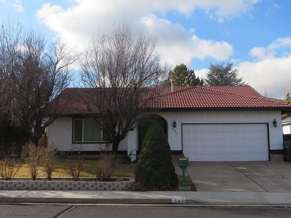 587 Creighton Way 3 Bedrooms, 2 Baths, 2 Car Garage. Rent $2500, Deposit $2490. 1810 sq. ft. Two pets of 40lbs. or less upon approval with an additional deposit of $500 per pet. TOTALLY REMODELED CUSTOM HOME 2 BLOCKS FROM THE ENTRANCE TO RANCHO SAN RAFAEL REGIONAL PARK! There are upgrades and features galore in this 3-bedroom, 2 bath one of a kind home. It starts with great curb appeal. Inside you will find wood laminate flooring, everywhere except the bathrooms and the bedrooms. FULLY RENONVATED KITCHEN! with modern finishes and an inviting open floor plan, less than a year old. Features lots of permanently sealed solid granite counter tops with upgraded tile back splash, lots of upgraded cabinets, a breakfast bar, sconce lighting, all black appliances, a breakfast nook and a pantry that opens to the family room which has a floor to ceiling brick accented fireplace (for aesthetic purposes only), a vaulted ceiling and a ceiling fan. You enter the spacious living room/dining room area that has a cathedral ceiling and a French door to the side yard. In the master suite you will find a large master bedroom, a master bathroom that is finished in a manner that is out of this world, a walk-in California Style closet and a French door to the deck out back. Other features include a hall bath with a generous use of tile that shows almost as well as the master bathroom; large secondary bedrooms with one of the bedrooms previously used as a formal office; brand new 2-tone paint throughout; brand new 2-inch faux wood blinds throughout; a large laundry room with its own closet plus cabinets; lots of light giving windows throughout; a finished garage with lots of built-in cabinets and a work bench plus dog runs on either side of the house. Out back is a very private tree lined yard with a large redwood deck with built-in seating plus a large patio. Last but not least is the fabulous Northwest Reno location right next to Rancho San Rafael Regional Park and UNR. Tenant pays G, E, W, T & S. 1-year lease. Tenant pays G, E, W, T & S. 1-year lease.