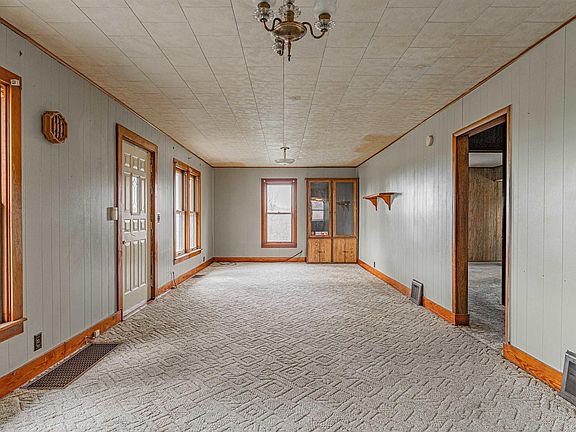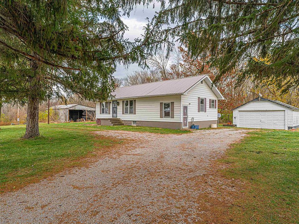 Perched upon a choice 1.89 acre parcel of ground you will find this solid two bedroom aluminum sided ranch style home host to a large basement, two car detached garage, and a large older machine shed. Main floor of home boasts an expansive living/dining concept with great floor space, equipped eat-in kitchen, two roomy bedrooms with large walk-in closets, full hall bath, and a large laundry/mudroom area. Property also features a large usable basement and a newer roof on home (part metal/part shingle). Private well/septic system on premises. All appliances to remain including washer and dryer (NOT warranted). So much potential abounds with this bargain priced rural Christian County property -- this one will NOT last long! ** Property sold as presented -- conventional or cash only, please! **
