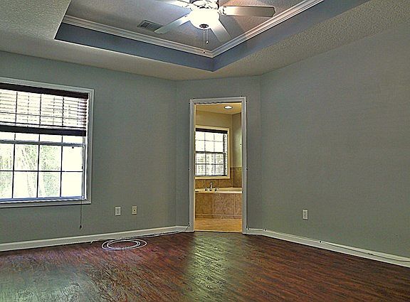 Move in ready 3 bedroom split floor plan home has very nice finishing touches that include: raised panel varied height cabinets, granite counters, wood laminate floors and tile, chari rail and wainscoting in eat-in kitchen, vaulted ceiling, tray ceiling. The master has private bath w/corner garden tub, double sinks, walk in closet & water closet w/separate shower. Peaceful fenced backyard has firepit w/benches around, divided storage room w/1 side yard equip & other side ha window unit&partially finished w/light fixtures&painted walls-great craft space! Subject to short sale approval- currently has accepted offer on property awaiting bank approval. Still accepting backup offers as well! Utilities will not be on for inspection. Still available to show!