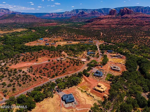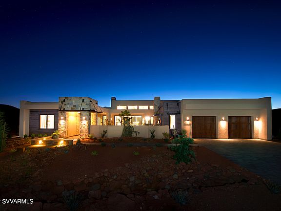 Our Award-Winning Enchantment plan home is under construction on an elevated homesite with direct Oak Creek frontage. This amazing contemporary styled home will enjoy the expansive red rock and valley views. The beautifully designed floor plan incorporates indoor and outdoor living, perfect for Sedona, featuring a courtyard with fireplace in the front and covered patio off the great room, this 3 bedroom home has several structural options available to add. A standard 3-car garage offers lots of room for outdoor toys. Enjoy the convenient access to Coconino Natl Forest and hiking trails along the east side of the community.
