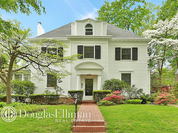 Live the dream in this classic Manor colonial on one of the sweetest streets in town situated just steps from the elementary school and a few blocks to the middle and high schools, library, shops and town. Hardwood floors, a beamed ceiling dining room and eat-in kitchen makes for easy living and entertaining. The living room connects to a sun porch that has been used as the reading, watching, conversing and napping room owing to it's tranquil qualities. A first level powder room is also a great convenience. Upstairs on the second level you will find a master with en-suite bathroom (& claw foot tub), a walk-in closet, 2 more bedrooms and a renewed hall bath room. Up another level to a full floor-through bedroom, (number 4) and full bath with yet another claw foot tub! The yard bursts with blooms, and purrs with privacy and a flagstone patio. Forced air gas fueled heat may lend itself to an easy switch to central air cooling. All this & efficient windows, 200 amp service & a garage too!