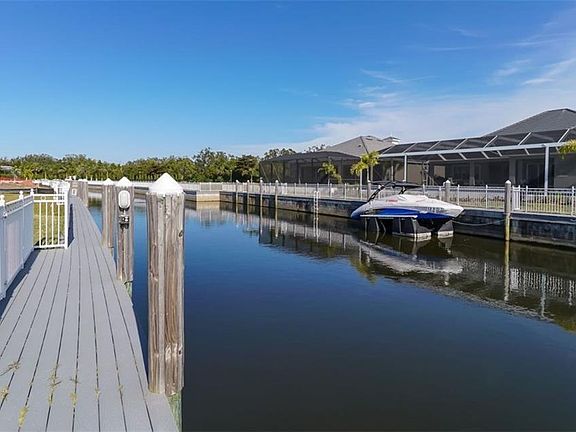 Be AMAZED by 365 days of boating & fishing from one of the best canals with access to the Manatee River. Private & secluded this home is tucked away in Gated Community of Harbour Walk At The Inlets. As you enter thru the lovely designer, glass front door, you will be WOWED by the soaring ceilings, open floor living & dining areas which flow to the open kitchen. Pride of ownership is reflected thru out this tastefully designed home. Stunning enhancements include 42" cabinets, solid stone counters, designer tiled back splash, upgraded SS appliances, new porcelain "wood finish" tile thru out the living spaces and den, crown molding, tray ceilings, spacious master suite with beautiful walk-in shower, New in 2020 closet systems throughout, New in 2020 whole house water softener system, New in 2020 Outdoor Kitchen. Significant upgrades assure years of worry free living. Entertain to your hearts delight on the screened-in pool deck and enjoy the 2017 newer gas pool heater. Lush tropical landscaping surrounds this home. Life doesn't get any better than this... a truly desirable waterfront location-Low HOA fees, NO CDD fees, easy access to 1-75, great schools, fine dining & points of interest from world famous beaches & night life. Internet & Cable included in HOA.