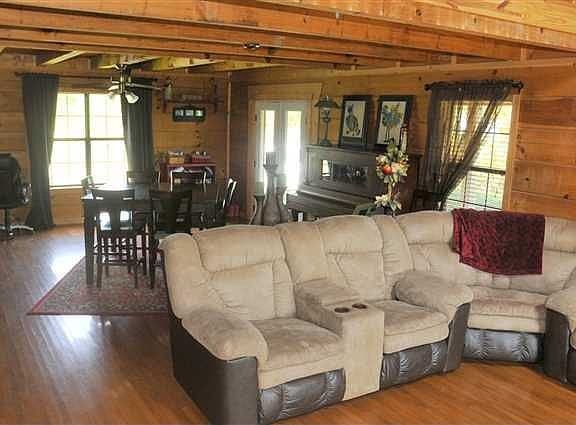 Well maintained Log home in the country on 1.5 acres. Lots of extras including plank ceilings with Rough Hewn beams throughout, soaring ceilings in the Living Room, beautiful hardwood floors, and so much more. Master suite is downstairs and 2BR/1BA is upstairs. Wrap around porch is big enough for rocking chairs or swings, even room for a dining table. Large laundry room off kitchen has outside entrance. New roof, heat pump, appliances, carpet, french doors and lighting since 2010. Brokered And Advertised By: RE/MAX Advantage Beebe-Capps Branch Listing Agent: Philip Hoggard
