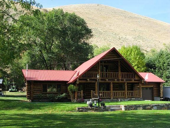 This 1975 square foot beautifully maintained home is situated on 1.54 acres. It has 3 bedrooms 1 3/4 bath with the master bedroom situated on the main level. The fenced pasture has an adjacent 600 s.f. loft barn plus an additional storage building. It has a large garden space with fruit trees and mature landscaping with underground sprinklers. It features a cozy covered front porch, a covered back deck and a covered balcony off of one of the upstairs bedrooms. The large open kitchen has a bre akfast bar and solid oak cabinets with generous storage. French door open from the living room to another deck in the back yard. This custom built log home is a must see.