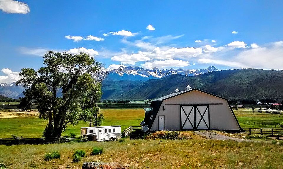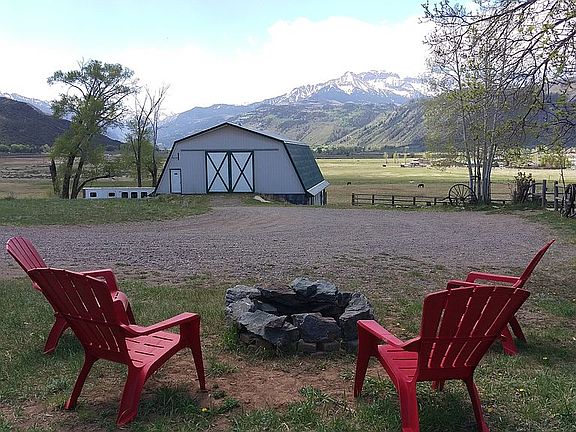 Spectacular location just east of the town of Ridgway. Offering 15+ acres with approx. 8 acres irrigated. Two homes: Log home 3 bed/2 baths. Second-home 2 bed/2baths, full basement. Complete horse set up, 7 stall barn with tack room, office, and wash area. Tons of hay storage and a 100 by 250 Olympic arena. Awesome views of Mt Abrams, the San Juan and Cimarron Mountains. Great schools, walking distance to town. Turn-Key Business! Live in one home and use the second home as a vacation rental for extra income. Rated number 12 on the Travel Channel for the best cabin rental in the United States! Rated number 1 by HomeAway for best Vacation Rental in Colorado. Over 250 five star reviews on Airbnb! Event Barn has been featured on Google News for one of the best artistic locations in Ridgway. Fully furnished business everything you need to get started today! Rental has over $60,000 in bookings for 2021 already.