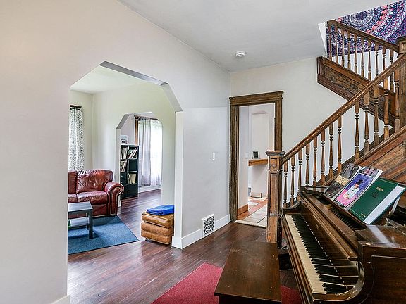 Find your place and space in Detroit. This charming brick and cedar-shingled home built in 1912 comes complete with the adjoining 30x120 chain-link fenced-in side-lot, making this property perfect for multiple-dog households, buyers interested in small-scale urban farming, and homeowners who simply desire more land. The entryway opens to a large, functional vestibule and view of the restored staircase and hardwood floors. Remodeled in 2019, the dining room and kitchen share a built-in multi-purpose counter which creates an openness perfect for modern entertaining. The bathroom features a delightful built-in linen dresser adding warmth and intrinsic charm to the second floor. Other features include a large, unfinished half-story attic, newer furnace, and newer tankless water heater. Outdoor security cameras, related hardware and monitor included. Buyers may keep piano if desired.
