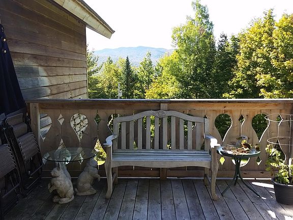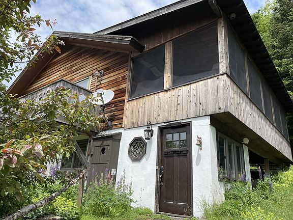 Country Chalet located on quiet dead end road. situated on +/-10 acres with pleasant mountain views. Built in 1984 the chalet has gone through many upgrades since owner purchased property 10 years ago. Two bedrooms with 1 1/2 baths, great room with galley kitchen , hickory cabinets, soapstone counters, rustic maple floors and includes appliances. Sleeping porch and two cedar decks, all new within 10 years. Large full bath with laundry and good size linen closet. Two card detached garage with concrete floor and detached workshop. Current, blueberry bushes and number of apple trees surround the house. Only 12 miles from Jay Peak Ski and Golf Resort, State of Art Waterpark, Hockey Arena