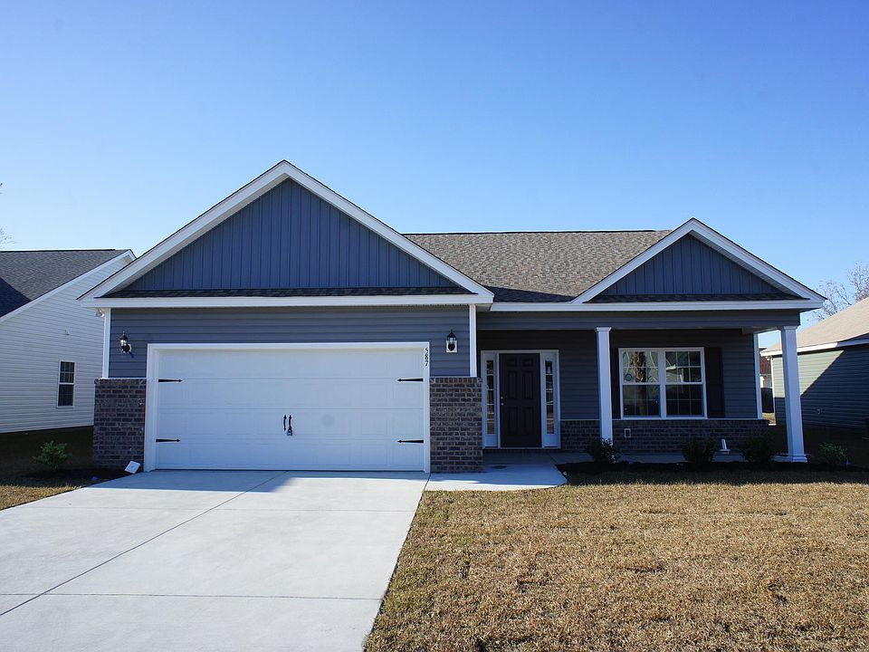 Beautiful Abaco floor plan under construction in the new Ocean Palms community. This terrific 3 bedroom, two full bath, open floor plan home will have light wood-look lvp flooring throughout. Stainless appliances, marble-look quartz counters, a cast iron enameled farm sink, staggered-height grey painted cabinetry, a large pantry and a convenient breakfast bar combine to give the kitchen the wow factor you're looking for, and the abundant recessed lighting, triple window in the great room, double window and accent windows in the adjacent dining area flood the room with light. A French door leads to a covered rear porch with a large separate patio. The spacious master retreat features a tray ceiling, oversized walk-in shower, plenty of storage in the cabinetry and linen closet, plus a huge walk-in closet. Two additional bedrooms and a bath are tucked off on their own private hallway, for privacy. All of the homes in Ocean Palms come standard with the luxury of natural gas (tankless water heater, gas heat and a gas range). The garage is completely trimmed and painted, with floored attic space accessed by drop-down stairs. Ocean Palms is conveniently located near shopping, restaurants, schools and world class medical offices and hospitals, and a short golf cart ride to Surfside Beach's gorgeous beach and the Atlantic Ocean. Other floor plans and inventory homes may be available, and CUSTOMIZATION OF FLOOR PLANS IS POSSIBLE!!! Community pool and cabana now open! Photos are of a completed, similar home and may have different features.