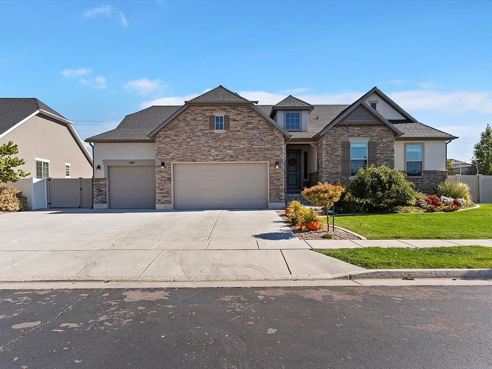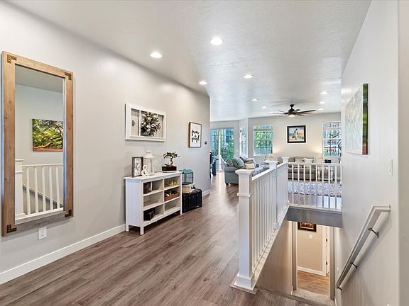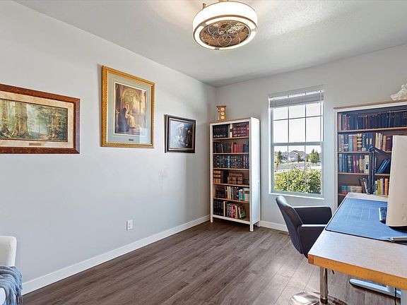 Step inside and fall in love with this charming Rambler, perfectly situated on a desirable corner lot in the Monterey Subdivision. A large open entry welcomes you with a versatile bedroom or office space nearby. Enjoy fantastic open-concept living at its best with a spacious Family Room and Kitchen featuring white cabinetry, stainless steel appliances-including a gas cooktop range-granite countertops, and neutral wood-style laminate flooring. The oversized main-floor Primary Suite is a true retreat, offering double sinks, granite counters, a separate soaking tub, walk-in shower, private toilet, and a generous walk-in closet. Downstairs, you'll love the fully finished basement-complete with a movie screen and projector that are included for cozy nights by the fire. The lower level also includes three large bedrooms, plenty of storage, and additional space perfect for play, study, or hobbies. Step outside to a yard you'll never want to leave. The large patio is ideal for entertaining, and the thoughtfully designed, fully fenced yard features fruit trees galore-peach, apricot, fruit-salad pear, and apple-along with beautiful perennials, shrubs, and trees that bloom throughout the seasons. The oversized garage offers parking for four vehicles, additional storage, and convenient RV parking. For just $45 per month, the HOA provides access to a swimming pool, picnic area, playground, and walking trails. This prime location offers easy access to schools, shopping, and the freeway-everything you need, right where you want to be. Square footage figures are provided as a courtesy estimate only and were obtained from County . Buyer is advised to obtain an independent measurement. Call now for your private showing.