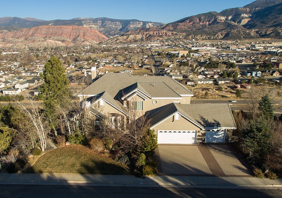 This gorgeous three story home overlooks Cedar Valley-- enjoy from any of the three covered balconies. Inside, there's space enough for the whole family. There is a sauna and jacuzzi, and granite in the kitchen. In the basement, the wood floors would be perfect for a dance studio, or exercise room or art studio.