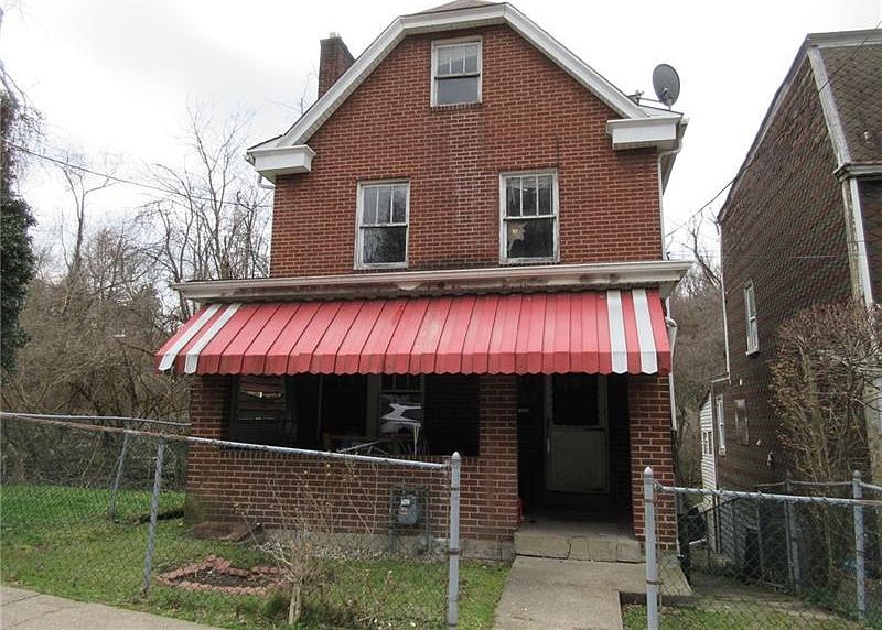 So much potential in this 2.5 story home located in the East Hills of Pittsburgh. Exterior offers level fenced yard next to wooded area with covered front porch. Interior holds formal living room with french doors, large dining room and kitchen with access door to rear yard. Second floor has 2 large bedrooms, 1 small room for office or storage and full bath. Attic space is finished with 2 additional bedrooms.
