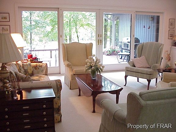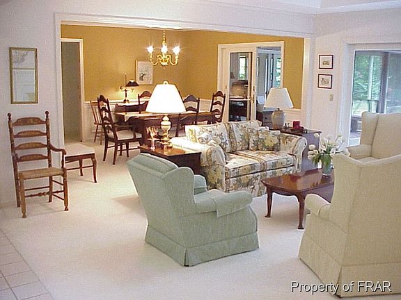 -OPEN, BRIGHT, FANTASTICE FLOOR PLAN IN IDYLLIC SETTING! House is at end of private drive & overlooks 14th hole. LR-cathedral ceil,gas log FP, bookcases,wall of windows w/view.DR-adjoins LR, KITCHEN-cathedral ceil.combo dining, morning rm w/wall of windows & view. SUN/Den-lots of glass & view. MASTER SUITE-golf view, wlk-in cl. MASTER BATH-jac. tub, separate shower. Interior newly painted & new carpet throughout. A very private setting. New Air/Heat ductwork installed to vastly improve efficiency.
