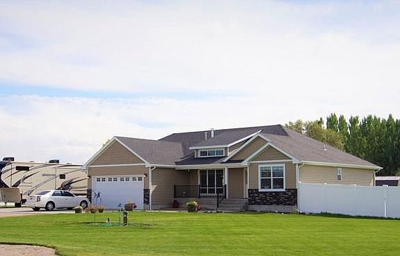 WELCOME HOME! Are you looking for a spacious turnkey custom built home that sits on 1.07 generous acres! Roomy 5 bdrm/3 bath. Main floor master suite has a separate tub & shower, large dbl vanity & walk-in closet. An open main floor living room has an abundance of natural lighting, LVT flooring, vaulted ceilings & gas stone fireplace that flows through to the elegant kitchen w/granite countertops, custom alder cabinets & stainless-steel appliances. Two additional bdrms with another full bath & MORE storage. When you wander downstairs you will love the sizable family room brightened w/natural light from the big egress windows. Down a hallway is a large bedroom with attached bath that could also be used as the master suite. Another bedroom, large storage room w/cold storage & mechanical room complete the basement. Come and admire the 3-car garage w/handicap ramp, its oversized space gives you abundant parking, work area & storage options. Enjoy the cooling central air in summer. But WAIT there is more.... New state of the art solar panels that were installed in July, adjacent to the garage is 15x46 RV parking w/50 amp outlet, full vinyl privacy fencing, full auto sprinklers, a 20x10 shed. Country Living but you are still close to the city.
