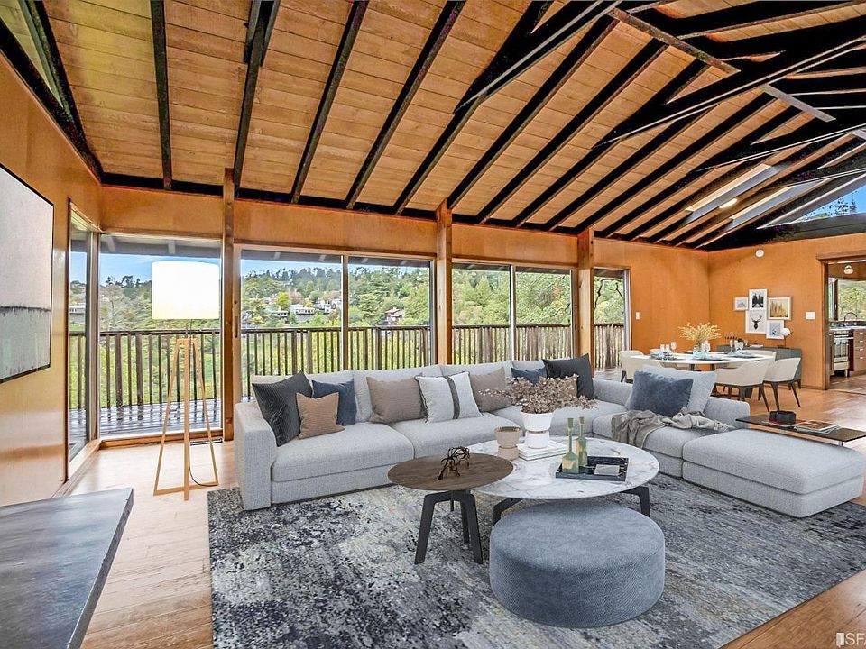 Rare 4BD/3BA Mid-Century Modern with bonus family room and large lot in the coveted Piedmont Pines-area of Montclair. 5870 Bagshotte Drive greets visitors with a bright Northwest facing living room/dining room combination with vaulted ceilings, floor-to-ceiling windows, fireplace and an adjoining wrap-around view-deck with Bay, Bridge and hill views, a modern eat-in kitchen with deck access, a large primary suite with rear garden access AND a 2nd bedroom/home office and full guest bath with shower over tub, all on the main level. Downstairs is a large family room with fireplace and direct 2nd deck access, plus 2 additional ample bedrooms, a 3rd full guest bath with shower over tub, a laundry room and direct interior access to the two-car garage with storage. Fresh paint, carpet, lots of period charm AND configuration options run through-out. A large lot with mature landscaping, hot tub and multiple patio areas, all ready for gardening, entertainment and play, complete this compressive offering. Wonderful location, close to Shepard Canyon Park, Joaquin Miller Park, Redwood Regional, Chabot Space & Science Center, local schools, Montclair shopping & dining, and quick and easy freeway access (13/580/24) to San Francisco, the South Bay, Contra Costa, and all points to the North.