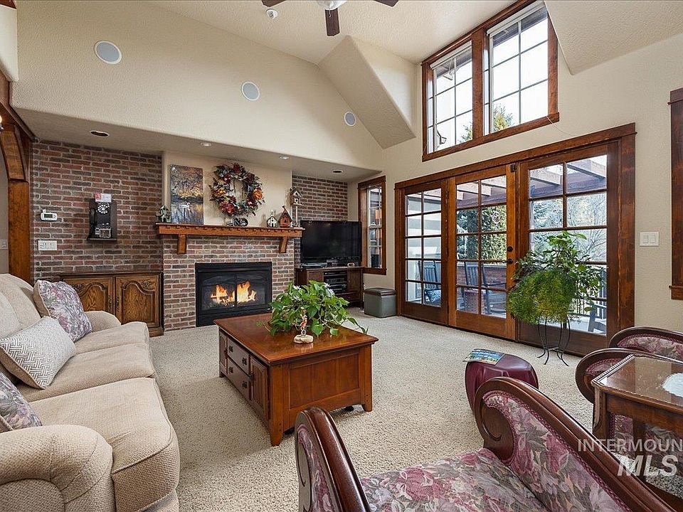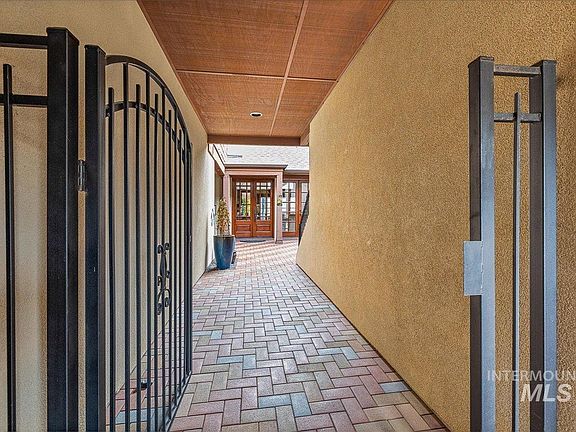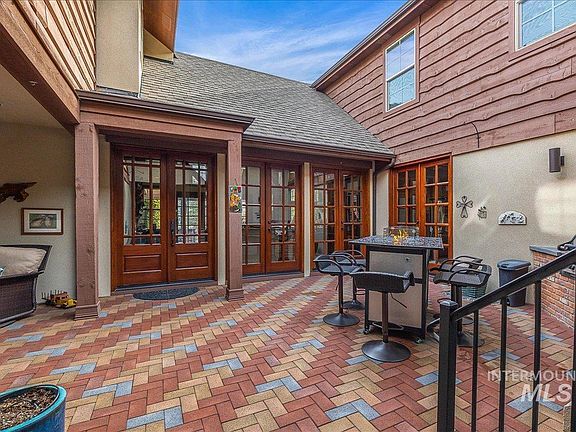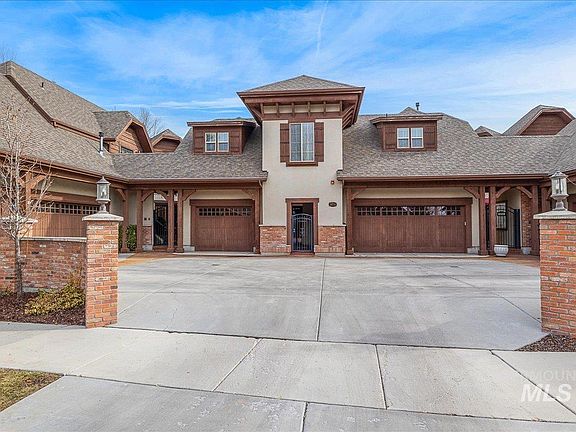 Welcome to your luxury lifestyle with low maintenance living opportunity! Situated along the Boise River in a private gated community, this former model home awaits. The main level is all about entertaining and enjoying an indoor/outdoor lifestyle. An outdoor courtyard features living and dining areas and can be fully opened up to the indoor living room. Natural light floods the living area through multiple french doors and large wood framed windows. An expansive kitchen with granite countertops and high end appliances warm the heart of the home. The back patio features a fireplace and wood pergola. The elevator allows all ability levels to access the primary suite on the second floor, featuring a fully ADA compliant bathroom. Two bedrooms on the opposite side of the home have their own bathroom, private access and wet bar. A gorgeous private pond with walking paths and access to the Boise River create a lovely way to enjoy nature right in your backyard, but with no maintenance. This is a must see!