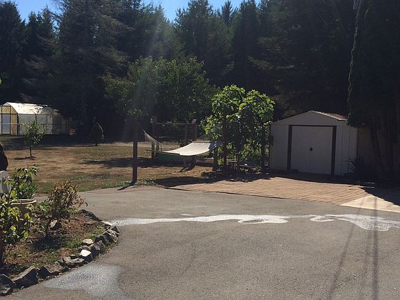 Redwood Paradise - 1400 square foot manufactured, 3 bedroom, 2 bathroom home, with detached room/storage, detached 2 car garage/shop, green house, raised garden beds, spacious front yard, circular driveway that is paved and much more. This 1989 home has a split floor plan, gas range/oven, indoor laundry room, large master suite and has been lovingly maintained. The green house and garden produces loads of fresh fruits and vegetables. A true peaceful paradise nestled among the redwoods.