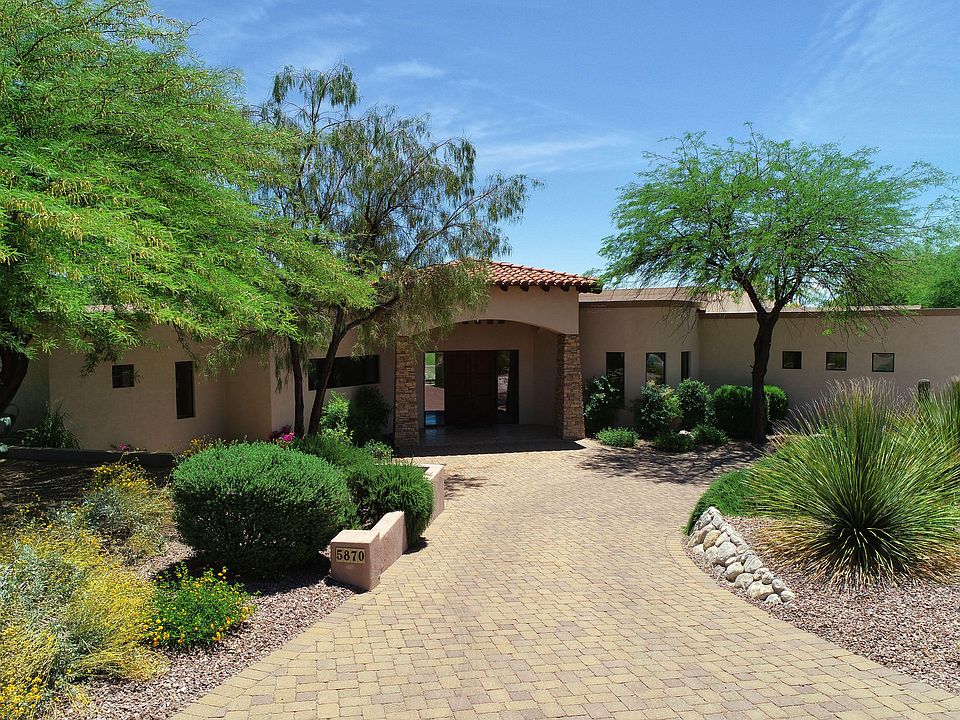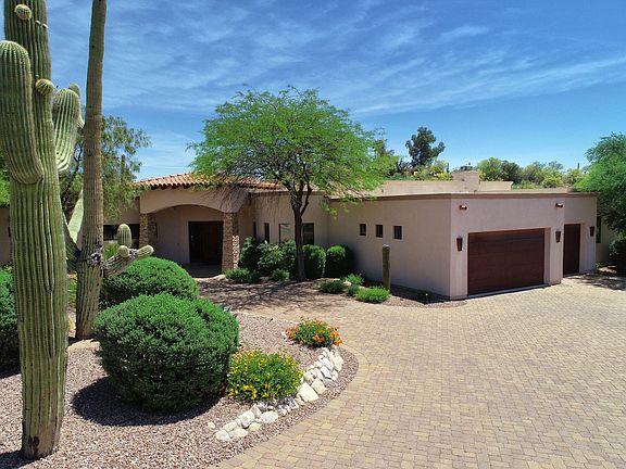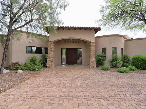 * Outstanding architecture in this southwest contemporary with a floorplan to fit today's busy lifestyle. Exquisite finishes with stone columned front porch and 8-foot double entry doors. 24 inch travertine tile floors throughout and solid wood floors in two bedrooms. Two impressive fireplaces with inlaid stone fronts. Open kitchen is a chef's dream with 6 burner Viking stovetop, lots of work space and cabinets.Expansive master bedroom has additional space for office,exercise room.A very private back yard backs to open space and wash. Covered porch surrounds the back of the home. Built-in BBQ and large swimming pool, perfect for entertainingCLICK ON PHOTOS THEN VIRTUAL TOURS TO SEE AWESOME 3D SHOWCASE!!