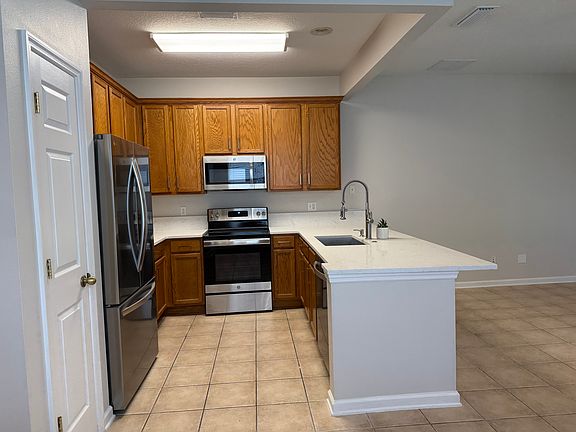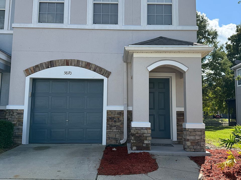 Beautiful 3 bedroom 2.5 bathroom Townhome with lake View in Stonefield at Bartram. Welcome to this freshly updated and painted 3 bedroom, 2.5 bathroom townhome, located in the desirable gated community of Stonefield at Bartram Park. This well maintained home offers a functional and inviting layout with modern finishes throughout. Downs stairs enjoy an open concept floor plan that is perfect for both relaxing and entertaining. The kitchen features at 42 inch cabinets, sleek, stainless steel appliances with new quartz California style countertops. A convenient half bath is located on the main level. Upstairs you will find three spacious bedrooms. The primary suite both a walk-in closet in an en suite bath with dual vanities and a garden tub and shower combo. The indoor Laundry area is upstairs and includes a full-size washer and dryer for added convenience. Step outside for a large screened in lanai that offers peaceful leg views and perfect for mornings or relaxing evenings outside. Enjoy maintenance free living with lawn care included. Tenants have access to the community amenities all just minutes from shopping, dining and major highways. Don't miss out on this opportunity to live in one of the most prominent areas in Bartram Park. no pets, please no cosigners or guarantees permitted. Amenities included Gated community Community pool Community gym Private walking trails No pets or smoking on premises. Renters will owe First and last month's rent plus security deposit to move in .