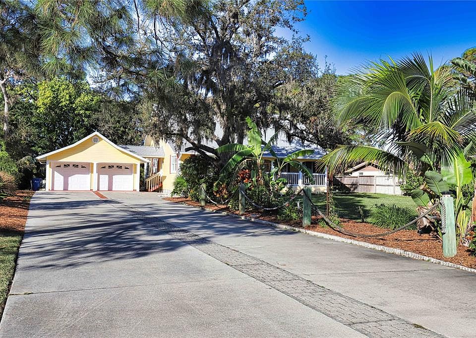 Escape to the ultimate Florida lifestyle in this beautiful South Venice retreat and feel like you’re on vacation every day. Perfectly positioned for tranquility and convenience, this exquisite property offering is nestled in a quiet neighborhood just a short bike ride from the breathtaking Manasota Key Beach. The open floor plan is bathed in natural light, with spacious vaulted ceilings that create a sense of airiness and freedom. There are cheerful bright rooms and beautiful pinewood floors. Recent upgrades include a brand-new air conditioning system (2023) with a transferable warranty. The roof features a durable 50-year, 3-tab dimensional shingle with a transferable 25-year warranty. This 0.76-acre property is a haven for nature enthusiasts, boasting an array of tropical trees, plants, and flowering bushes that attract birds, butterflies. The flora has been meticulously curated to feature only Florida-friendly, robust, and healthy trees that thrive in the local conditions, providing protection for both the property and the residence in extreme weather. At about 15 feet above msl it’s in a no flood zone. The expansive driveway accommodates multiple vehicles. The residence is connected to the Englewood Water District's water supply, renowned for its exceptional reverse osmosis system. A well with a recently replaced pump motor supplements the water supply and irrigates the yard. A spacious two-car garage features a covered catwalk to the house. This enchanting home is the perfect haven for those seeking a relaxed, coastal lifestyle.