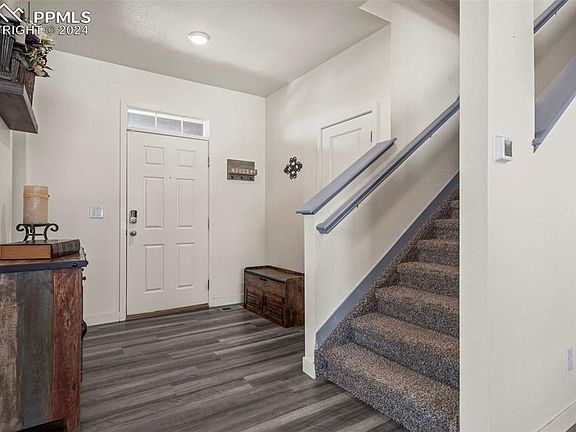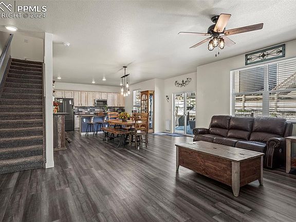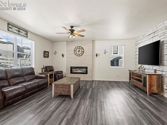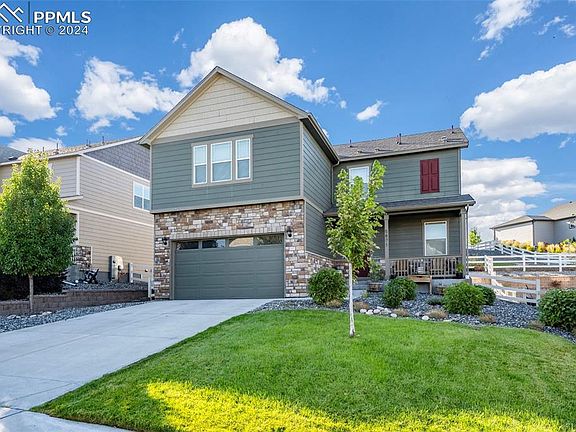 Beautifully upgraded two-story home showcasing upgrades throughout and a low maintenance backyard perfect for entertaining! Near Plum Creek Golf Club, parks, trails and open space, this home is great for keeping you engaged in the community. The main floor showcases luxury vinyl plank flooring throughout the great room, accented by custom tile detailing behind the TV, new ceiling fans, and an abundance of natural light. The eat-in kitchen has been thoughtfully updated with recently installed decorative countertops, a modern farmhouse-style sink, backsplash, and new appliances such as the gas range, microwave, and a 2021 dishwasher. Upstairs, discover a loft, primary suite, two secondary bedrooms, full bathroom, and conveniently located laundry room. The basement has been enhanced with additional lighting, outlets, and switches, as well as a small crawl space for extra storage. Outside, entertain or relax on the new concrete patio with a freestanding pergola or the walk-out deck from the great room. The backyard features lowmaintenance turf, while the front yard is equipped with a sprinkler system. Near I-25 makes this home ideal for commuting to either Denver or Colorado Springs. This home is ready to provide comfort and functionality for its next owner!