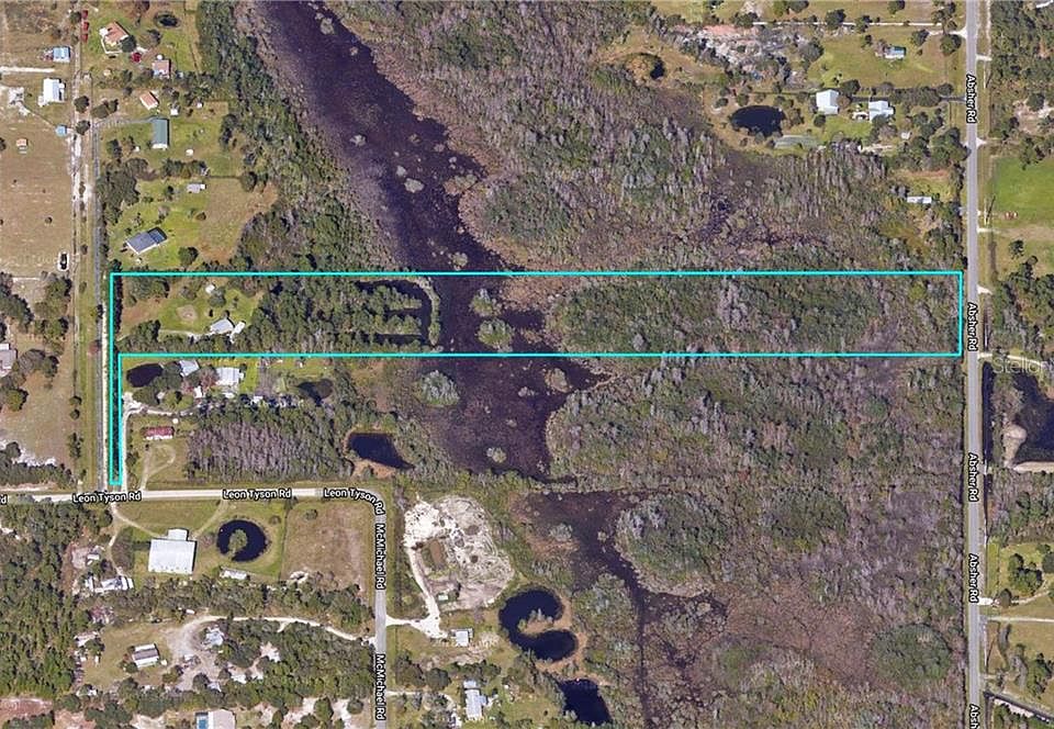 Fantastic location 10.91 Acres. Singlewide Mobile home needs work good for impact fee. Large shop/barn 1200 SF. Perfect location for your new home. Frontage on Leon Tyson and Absher Road. Minutes from Lake Nona and Medical City.