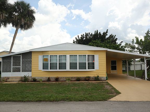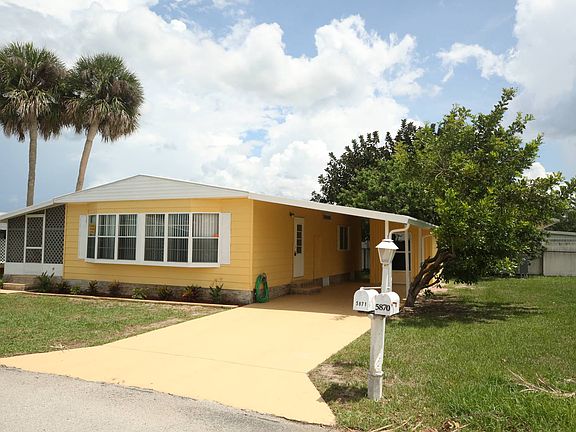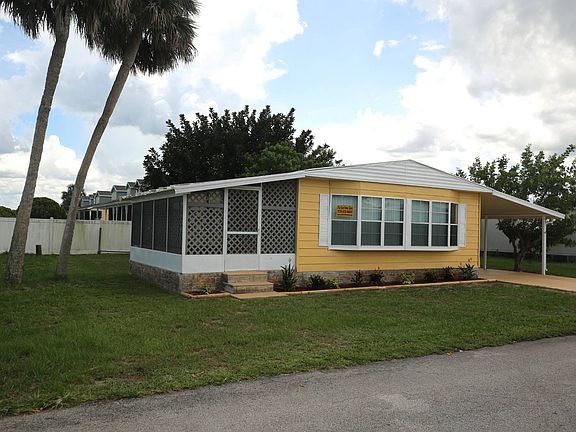 2 BED 2 BATH HOME IN RIVERGROVE RIGHT ACROSS THE STREET FROM THE INDIAN RIVER 55+ Exterior: Driveway, carport, storage shed / workshop w/ laundry, screened in Florida room, new rubber roof. Kitchen/Dining room: Entry door into home, laminate flooring, cabinets for storage, stove, refrigerator, freezer, lighted ceiling fan, stainless-steel sink, built in hutch with cabinets and shelves for storage or décor. Living room: Laminate flooring, semi open concept to the dining area, windows for natural lighting, peel through window into kitchen, sliding glass door leading outside to the screened in Florida room. Florida room: Lattice throughout for privacy, door leading outside to the front of the home. Guest bathroom: Laminate flooring, vanity with storage, linen storage space, one piece shower tub combination. Guest bedroom: Laminate flooring, walk in closet for extra storage. Master bedroom: Laminate flooring, walk in closet for storage, can accommodate a queen or king sized bedroom set. Master bathroom: Laminate flooring, vanity with storage and mirror, high rise toilet, walk in shower with double benches. River Grove Mobile Home Village is a small age restricted 55+ community with 96 homes, a huge community pool and is located across the street from the Indian River Lagoon. Access to the Atlantic Ocean via Sebastian Inlet is within view. 2 boat marinas with dockage, storage, and Freedom Boat Club is right next door. River Grove is the perfect location for a fisherman, boater, water skier or surfer. There are three grocery stores, Walgreens & Sebastian River Hospital within 2.5 miles. Non-aggressive pets under 40 lbs. allowed.