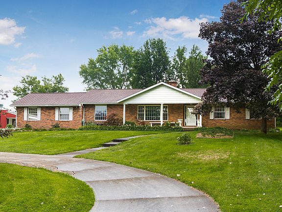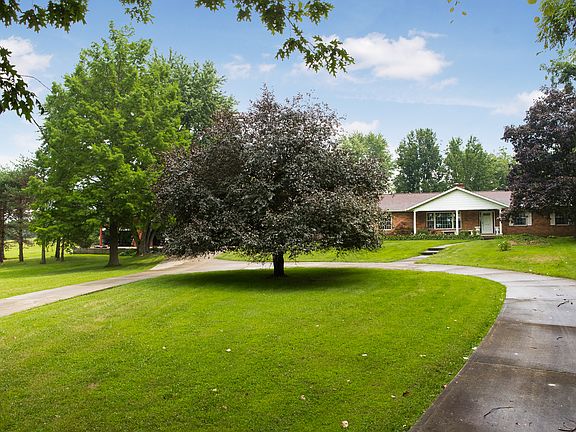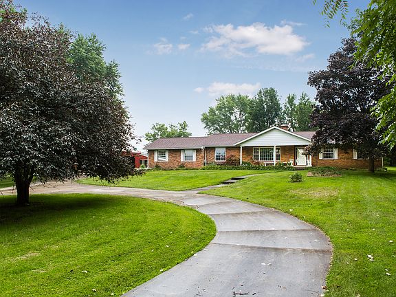 Private 10.8 acre 2 parcel estate with brick ranch home and an awesome 76x56 barn complete with loft and workshop. Immediate possession on this 4 Bedroom, 3 Bath home with partially finished basement. Wood burning fireplace in family room opens up to 4 seasons room. Multi level rear deck leads to a covered and sunken top tub. Full concrete driveway. Home even contains a hidden walk in gun room! Property currently has a private motorcycle track. Great property for serenity, motorcycle riding, hunting, or even a small farm or horses. Both refrigerators and washer & dryer will convey with property. Vehicle lift in Barn does not convey but the plumbed in air compressor does convey.