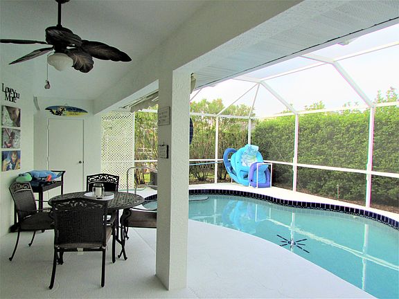 NO REALTORS PLEASE Much sought after Gulf View Estates move-in ready home with open concept, split floor plan. 3 bedrooms, 2 baths, 2 car garage and heated pool in screened lanai with outdoor shower and bar area with new refrigerator and sink. Lanai screen cage has been updated with corrosion proof fasteners. Updated kitchen appliances and whole house surge protection. Lexan clear window and door hurricane shutters as well as garage door protected with center support post and mitigation approved for credits on insurance. Very private back yard with banana trees and pineapple plants to enjoy in your own tropical paradise.. Automatic watering to all plants including inside lanai and birdbath. Lawn has irrigation. Garage has a wall of 6 double door Coleman storage cabinets as well as a full wall workbench. Low HOA annual fee of $215 and no CDD's. Tons of storage in attic and garage. New Roof, 2019, new exterior paint in 2018, new AC in 2017, new pool pump 2017 and new water heater in 2015. Public water and sewer. Close to schools, theater, beaches and shopping. Need more info please call or text 941-416-6395