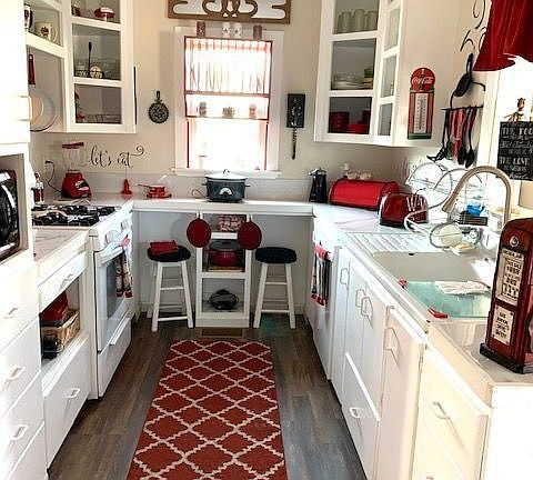 Your own piece of paradise! This charmer has 2 bedrooms,2 baths and offers real curb appeal from the time you enter the front gate. There is a front porch that wraps around a big portion of the home. As you enter through the front door you will find an inviting dining room and living room. The retro kitchen is breathtaking and will capture your heart. The upstairs also has a remodeled 3/4 bath with a large shower. As you come downstairs you will find a nice laundry room, 2nd bathroom and two bedrooms. The master bedroom has a walk in closet and a door that leads to an outside sitting area. Can't forget to mention that the yard is to die for! There is a garage, storage room and a "cantina" to the left, the "cantina" can serve many purposes and is currently used as an additional bedroom/guest quarter with a bar area, sink, refrigerator, microwave and even a toilet. Outside is a nice sitting area with a canopy and an outdoor bathroom. When entering the gate to the right there is a huge garage/workshop/office (man cave) and another storage shed.This home is located at the end of a dead end street, fully fenced around the flat portions and usable space and is .54 acre. Must See!