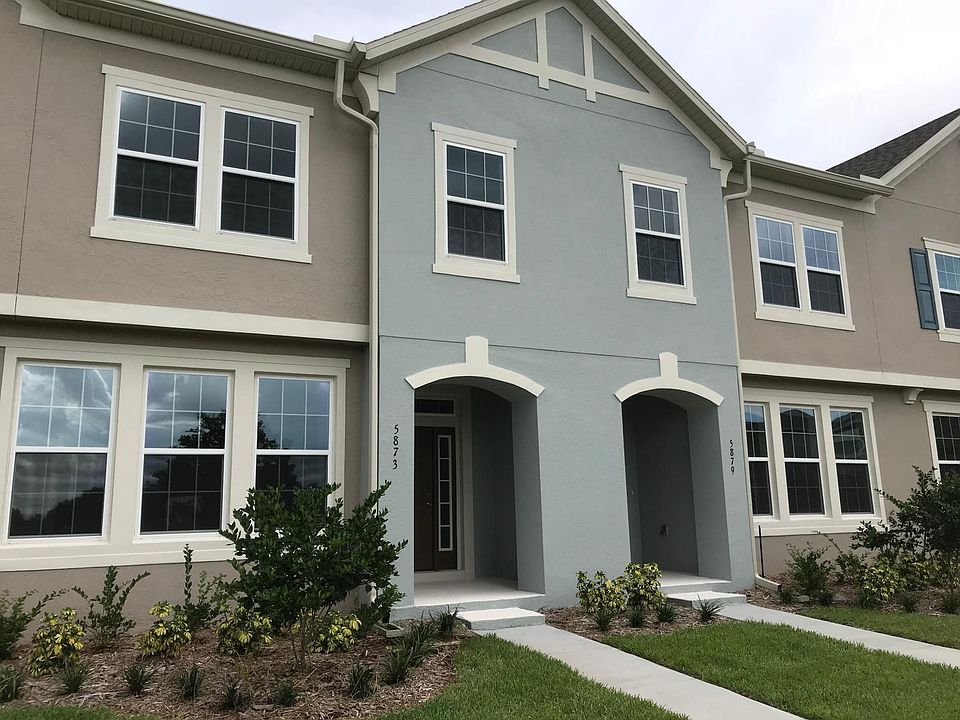 Lawn care included, tenants responsible for utilities (water, electric & cable / internet) 3 bedroom 2.5 bath townhouse at orchard hill at winter garden , The Brookside Plan at Orchard Hills is a bright and beautiful two-story townhome with three bedrooms, two and a half baths, and a two-car garage. This home offers an open floor plan with living area, dining area, and kitchen with island. The first floor also includes a powder room. The second floor of this plan includes an owner's suite with a generous walk-in closet, outdoor access to a balcony, and owner's bath with separated shower and tub, two more bedrooms, bath, and upstairs laundry for convenience. the ORCHARD HILLS have resort style pool and the gym and children play area , bridge water crossing middle school right around the corner , close to 429 and winter garden village ,