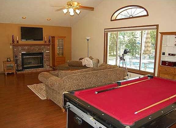 Gorgeous home located in a quiet Pendleton schools subdivision with an in ground pool. This large two story home sits on a nice lot and features a great room that overlooks the pool, an updated kitchen and a master suite. The custom built maple kitchen has tons of cabinet space, built in appliances and is open to the dining room. A private formal living room has built in book cases and is open to the dining room. Upstairs the master suite has a full bath with walk in closet. Virtual tour.