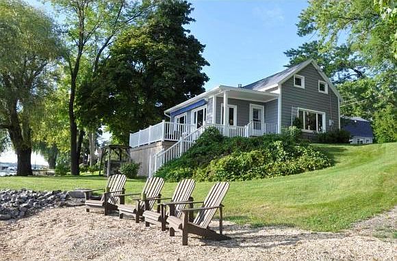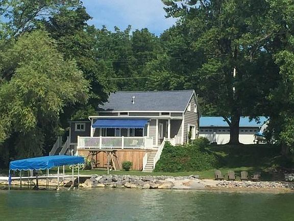 ATTENTION TO DETAIL & A MLLION DOLLAR VIEW. Extensive renovations designed for easy maintenance, and high-end amenities, makes this classic 1940's yr round home on 108' level feet of Cayuga Lakefront a delight. Easy to Live on one level - Main floor has Bedroom, full bath w/ Laundry, Eat-in-Kitchen w/Wolf Stove, LR w/ Gas Fireplace, Lakeside Deck w/awning. 2 Beds Upstairs, w/new full bath & great storage. Convenient Lakeside walkout basement. Rare Space on Lake- 3 Bay detached garage. Muni Water & Sewer. Quiet Lakeside Community. EZ to ROC/SYR/ITH.