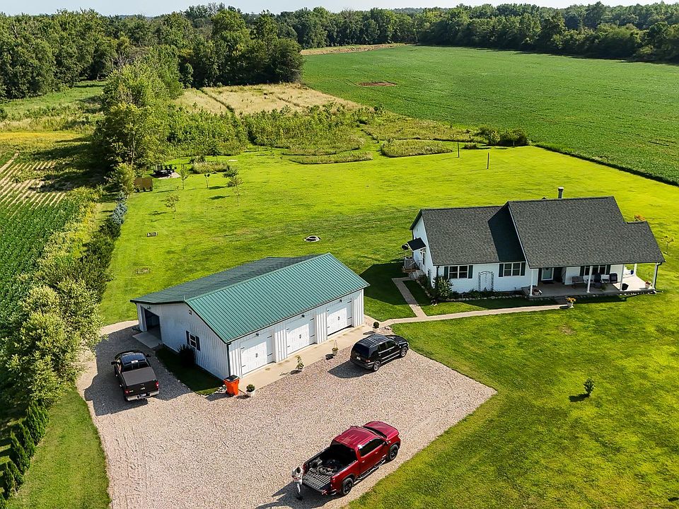 Discover the epitome of Midwest countryside living with this stunning 1,680 sq ft custom-built home, completed in 2016 and nestled on 31 breathtaking acres along Deer Creek. This property offers an unparalleled opportunity for outdoor enthusiasts, providing top-of-the-line hunting for whitetail deer, waterfowl, and turkeys, as well as excellent fishing. Home Features:Step inside to an open-concept design anchored by a striking rock fireplace. The spacious kitchen features ample cabinet space, a normal island, and an island with built in tap, making it perfect for large gatherings. The dining and living rooms flank the kitchen, separated by the fireplace, creating a warm and inviting atmosphere while being able to see tremendous views from mutiple directions. Enjoy the serenity of the countryside in the three-season room, which offers picturesque views of the property. Bedrooms and Baths: Off the main living area, a hallway leads to the bedrooms, guest bath, utility room, and appliance room. Each bedroom features deep closets for ample storage. The master bedroom is designed with extra insulation to reduce noise, ensuring a peaceful retreat. The master bath with a double vanity is easilty maneuverable. Flexibility allows for a third bedroom or an office. The home boasts scratch-proof flooring and solid wood doors throughout. The well provides extraordinary pressure, complemented by a top-of-the-line water system. The home features electric heat and air and was built on a 5-foot crawl space with lighting and layers of plastic for added protection, accessed via the master bedroom closet. Outdoor Living: The home includes a composite deck and concrete porch, perfect for enjoying the outdoors. Detached Garage/Shop: The 26x40 three-bay detached garage/shop is constructed with the same attention to detail as the home. It is finished with 1/2" oak on the inside, includes a water spigot, storage upstairs, an electric ceiling heater, and TV hookup. It can serve as a basic garage or a "man cave." Additional Storage: A storage room off the back provides ample space for UTVs and tools. Outdoor Activities: Deer, deer and more deer. The property is ideal for hunting with its rich history, low pressure, surrounding ag fields and habitat in the forest program support tremendous deer, duck, and turkey hunting. Additionally, enjoy mushroom hunting, fishing for smallmouth bass and alligator gar to name a few., and discovering an abundance of artifacts in a documented area.