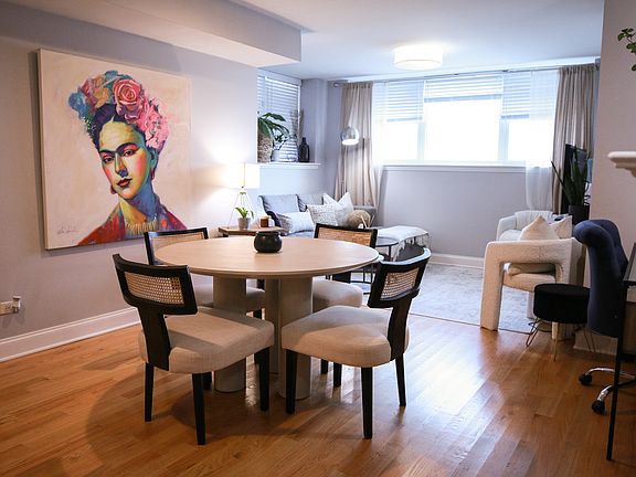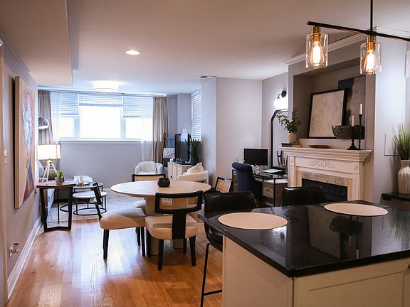 A short walk from the Peterson Metra station, Andersonville's Restaurants, bars, and boutiques, and the Bryn Mawr red line stop. 2 Bed, 2 Full Bath. Parking, in-unit laundry, central heating and air conditioning, gated entry, and storage locker. Elegant condo with tons of natural light and a spacious open floor plan with a living room, large dining room, and office nook. The kitchen is equipped with a dishwasher, LG refrigerator, microwave, gas stove, and granite countertops. The primary suite offers a walk-in closet and an en-suite bathroom complete with dual vanities and a whirlpool tub. Water included in rental cost. No smoking permitted.