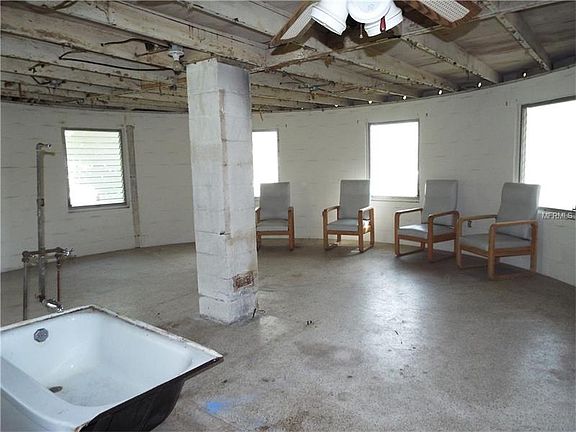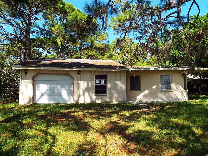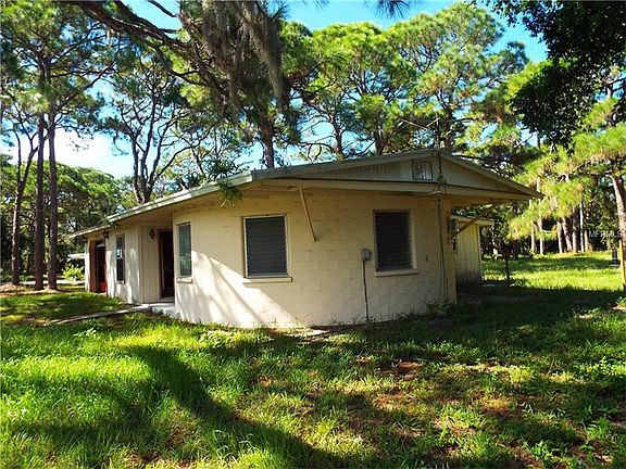 ONE OF A KIND ROUND HOUSE. This home started out as a 23 foot circle with kitchen, living, bath, bedroom all under an exposed beam ceiling with terrazzo floors and more charm then actual living space. The original owners worked for Ringling and used this home as a winter residence, lots of history here. Through the years a large addition was added creating a kitchen, huge living area, guest bedroom and garage. The original house became a master suite and acquired a metal roof over. The current owner field fenced the back yard and started a major renovation which has come to a halt. This idyllic, circa 1952 cottage, needs a new owner with vision, tools and a checkbook. The reward will be tons of sweat equity in a truly unique home situated on a 3/4 acre lot one mile from Manasota Beach with a colorful history to talk about. Better get AROUND to calling quick, this property is priced to sell.