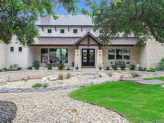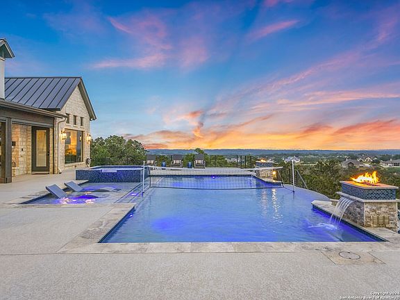 Sweeping panoramic hill country views captivate the soul from the moment you enter this private oasis! Resort style living with stunning infinity edge pool, tanning ledge, and rejuvenating hot tub exemplified with expansive outdoor entertaining space will make guests swoon! This custom built masterpiece was featured in the Parade of Homes in 2022 and features thoughtful touches and luxurious finishes. Oversized garage and driveway easily accommodate a 25 ft boat. Hill country living at its best!