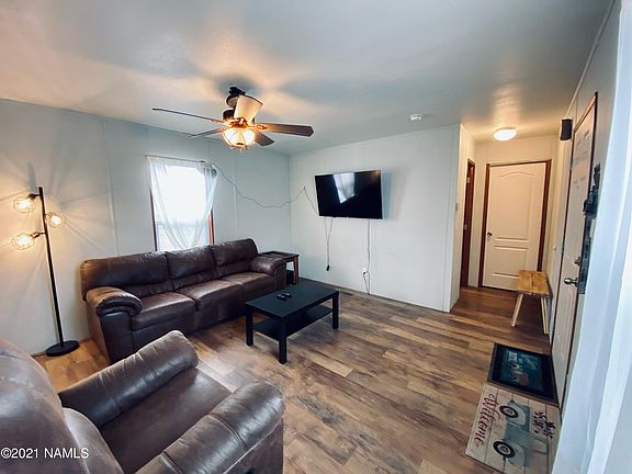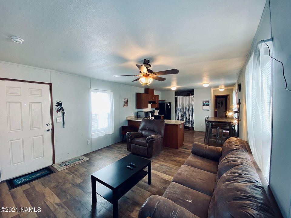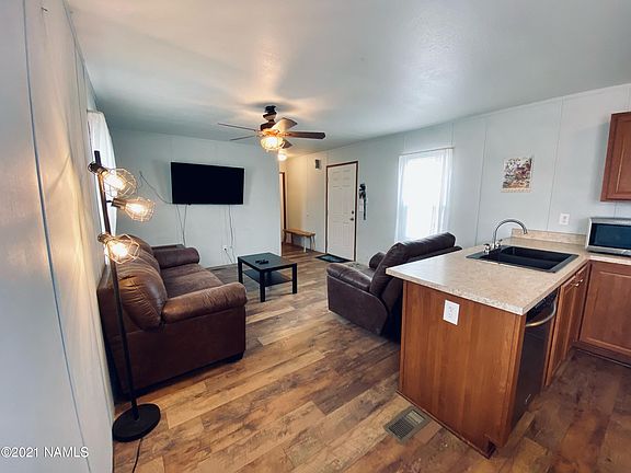 Affordable housing does exist in Flagstaff!! This cozy 840 sq ft split floor plan home has 2 bedrooms, 2 baths, and a brightly lit living that flows into the kitchen. If you are a first-time home buyer or want to have a second home with Mount Elden views don't miss out on this rare opportunity. Located in Elden Shadows Mobile Home Park, Space Rent (Lot-Rent ,Land Lease) is $395 a month that is paid to Elden Shadows and includes trash, and recycling. No short-term rentals. No pets, unless they are service/emotional support; up to two. Adults must be able to pass a background screen at a cost of $40 per applicant.