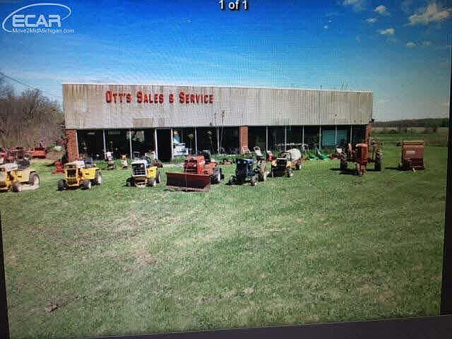 It is a garage type building, approx. 7000 sq ft. you could probably get up 10-15 cars inside it has a half dozen garage doors. It's built on a slab. Formerly used as Otts Sales and service. There is no septic or well on this property!