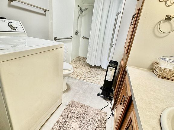 Forget the cramped apartment! This charming single-wide manufactured home boasts a recent remodel, including brand new flooring and a fresh coat of paint throughout. For added privacy, the original primary bedroom has been cleverly converted into two separate sleeping areas -perfect for roommates, a small family, or anyone who appreciates their own space. But functionality doesn't stop there! This meticulously maintained home features a metal roof for lasting durability, as well as additional insulation and underbelly reinforcement for year-round comfort. Enjoy peace of mind with a fully fenced yard, and easy access thanks to a wheelchair-accessible bathroom and a convenient ramp leading to the front door. This affordable gem offers everything you need for comfortable living!