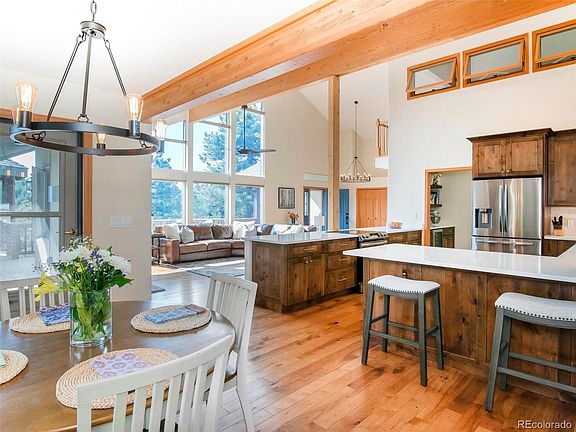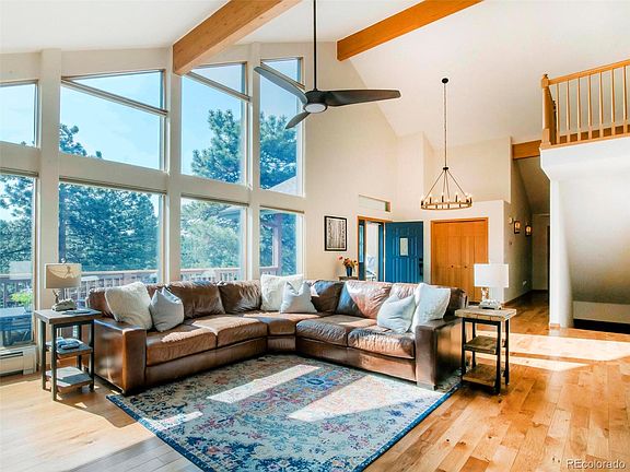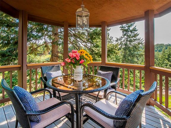 Nestled into the Foothills of The Rocky Mountains your shire awaits! Stunning remodel throughout the home has just been completed. Pride of ownership with every detail updated with luxury in mind! Truly turn key ready! The stunning new kitchen has Knotty Alder soft close cabinet, quartz counters, stainless steel appliances and a beverage fridge. Amazing sunny and open floor plan taking in the natural mountain views and rock outcroppings surrounding the home. Gorgeous hardwood flooring throughout the entire main floor living with the exception of one secondary bedroom. All three bathrooms in the home have been completely updated to include tile flooring, showers, vanities, quartz counters, toilets, lighting & mirrors. The primary bathroom has an oversized custom shower, soaking tub, double vanity sinks with quartz counters, all new lighting & heated tile bathroom floor. The interior of the home has been completely updated to include all new lighting installed, carpet, ceiling fans, roof 2022, garage doors, exterior doors, freshly painted and updated hardwood on all doors. This home offers 3 bedrooms on the main floor to include the primary suite plus an additional lower level bedroom. Additional home office in the loft with an oversized walk in closet plus a lower level bonus room that is currently being used as a home gym. The wrap around deck with covered gazebo offers plenty of room to enjoy entertaining and relaxing in a parklike mountain setting. The additional gazebo in the yard has power to it and is a great space for entertaining. No HOA and plenty of room to park an RV. The internet provider is Starlink and the equipment will be included with the sale of the home. Located within 7 minutes to Hwy 285 for a very easy commute down the hill and within 10 minutes to Downtown Evergreen. Your search for perfection is over, Welcome Home!